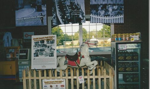A percentage of sales from participating products were donated to the project. At the time Heinen's had 13 stores in the Cleveland area and each had on display a horse from the Euclid Beach Park Carousel. The 54 horses and 2 chariots were restored and in storage at a Western Reserve Historical Society facility. Also on display at each store were original ride cars from the amusement park. Enlarged photos from Euclid Beach Park's past, with the promotion's theme, Euclid Beach Park Days . . . Celebrating Cleveland Families were suspended overhead.